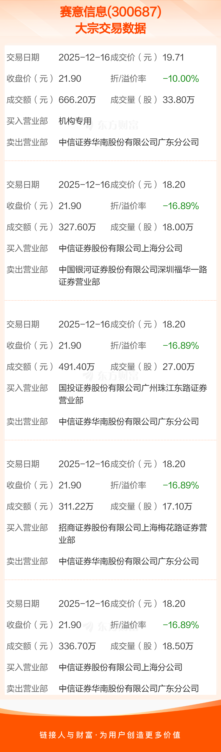 大宗交易:赛意信息成交2133.12万元,折价14.86%(12-16)