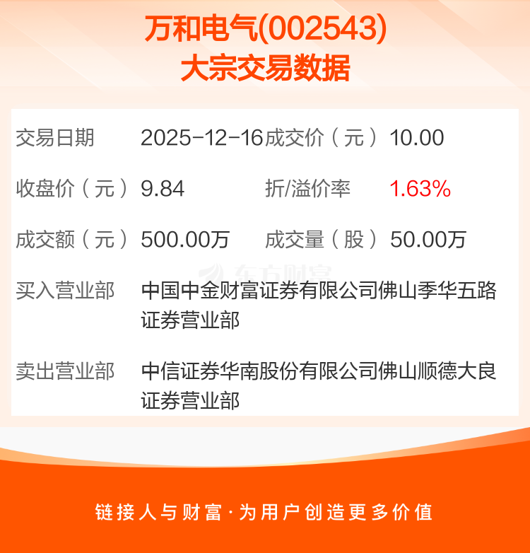 大宗交易:万和电气成交500.00万元,溢价1.63%(12-16)