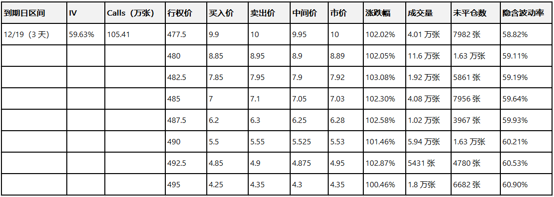 观察本周五行权的CALL单,多张涨幅翻倍。