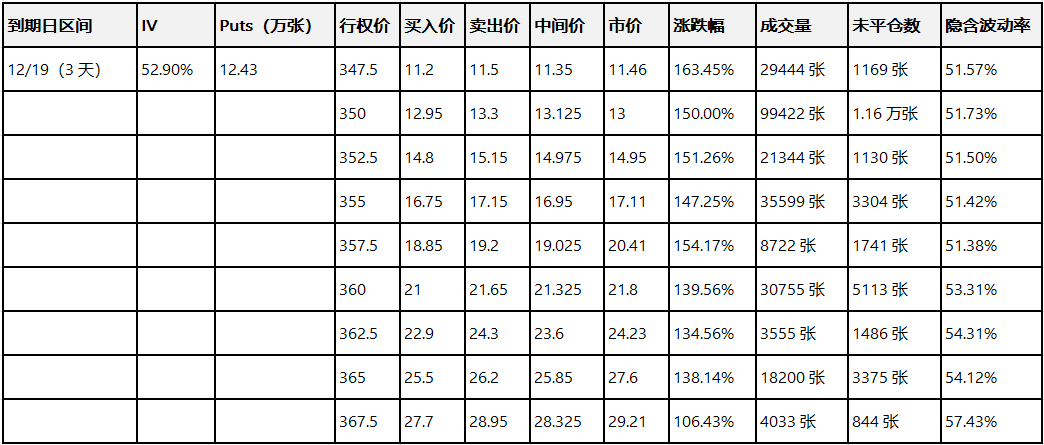 观察本周五行权的PUT单,多张涨幅翻倍。