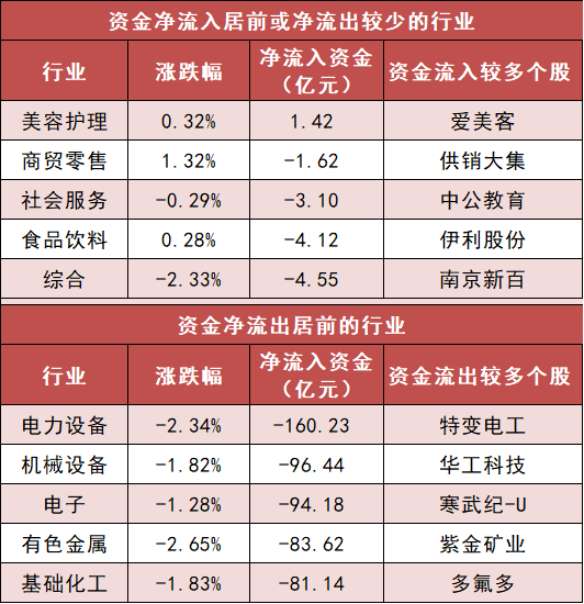 【16日资金路线图】两市主力资金净流出超520亿元 美容护理行业实现净流入