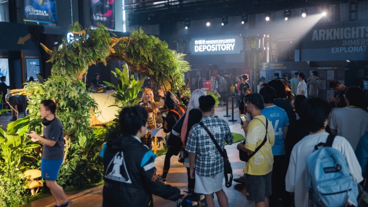 以年会举办地徐汇西岸为例,西岸艺术中心、西岸国际会展中心、西岸穹顶艺术中心、西岸美术馆、油罐艺术公园、西岸梦中心等六大文化艺术地标,打造“游戏+文旅”“游戏+科技”沉浸式场景,腾讯《无畏契约》手游先手试玩会、腾讯《地下城与勇士》DNF IP宇宙嘉年华、鹰角《明日方舟》集成映射沉浸式线下展、《碧蓝航线》2025港区盛夏清凉节等IP衍生活动交替上演,年均吸引超50万线下客流。