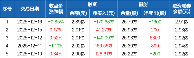 华贸物流:融资净偿还170.68万元,融资余额2.89亿元(12-16)