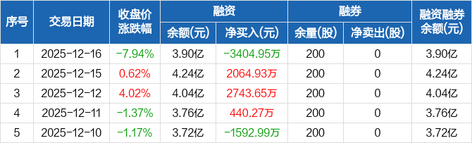 神工股份:融资净偿还3404.95万元,融资余额3.9亿元(12-16)