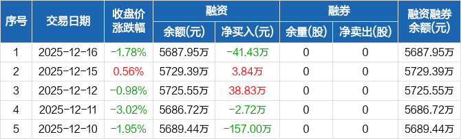 睿昂基因:融资净偿还41.43万元,融资余额5687.95万元(12-16)