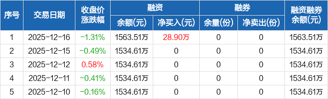 A500指数ETF:融资净买入28.9万元,融资余额1563.51万元(12-16)