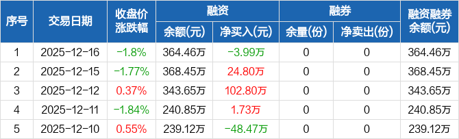 机器人ETF南方:融资净偿还3.99万元,融资余额364.46万元(12-16)