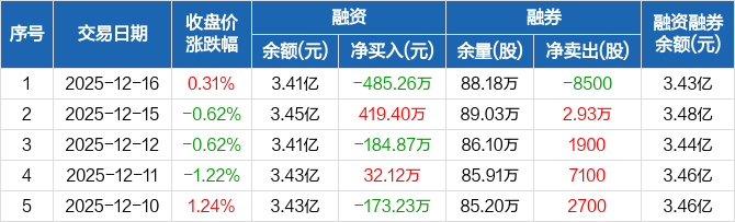 金螳螂:融资净偿还485.26万元,融资余额3.41亿元(12-16)