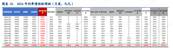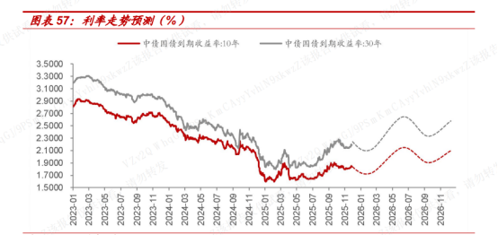 我们预计2026年利率中枢或上行。节奏上来看,预计2026年1-3月利率震荡上行,需要防范债市风险。“十五五”开局之年,政策靠前发力,地方政府积极性提升,宽信用对债市偏不利。其次,市场风险偏好较高,股市可能在1季度走强,从而对债市带来利空。最后,预计CPI和PPI同比在明年1季度回升的斜率更快,这也对债市偏不友好。2026年2-3季度或存在交易性机会。