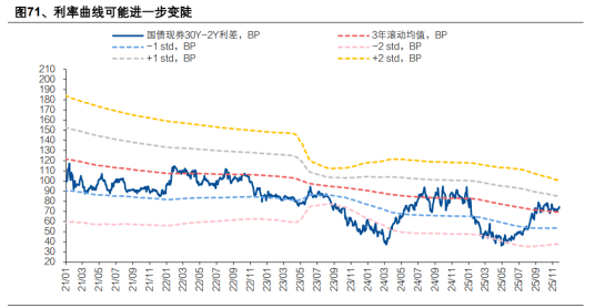 展望2026年,我们认为债券利率整体仍将下行,收益率曲线或延续牛市变陡趋势。若2026年美国进一步降息,中国汇率约束也可能有所减弱,为应对人民币升值压力,我们认为不排除中国可能加快货币政策放松节奏,货币市场利率存在补降空间,对应债券收益率曲线牛市变陡。我们预计2026年1年期存单利率低点将降至1.0%附近,10年期国债收益率低点则可能降至1.2%-1.5%区间。