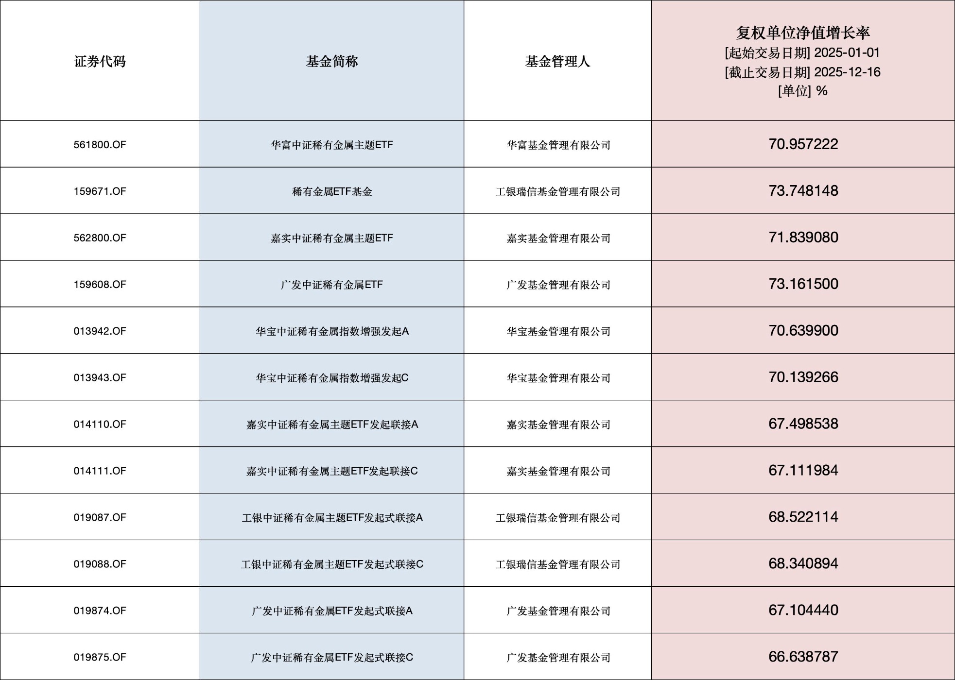 在稀有金属ETF方面,Wind资讯数据显示,截至12月16日,今年以来12只“稀有金属ETF”净值增长率平均达69.64%,表现十分亮眼。其中,华富中证稀有金属主题ETF、稀有金属ETF基金、嘉实中证稀有金属主题ETF、广发中证稀有金属ETF、华宝中证稀有金属指数增强发起A、华宝中证稀有金属指数增强发起C等6只ETF年内净值增长率均超70%。