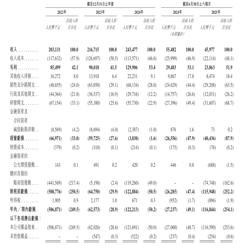 2022年、2023年、2024年以及2025年上半年,公司的研发开支分别约为0.67亿元、0.55亿元、0.56亿元及0.32亿元。