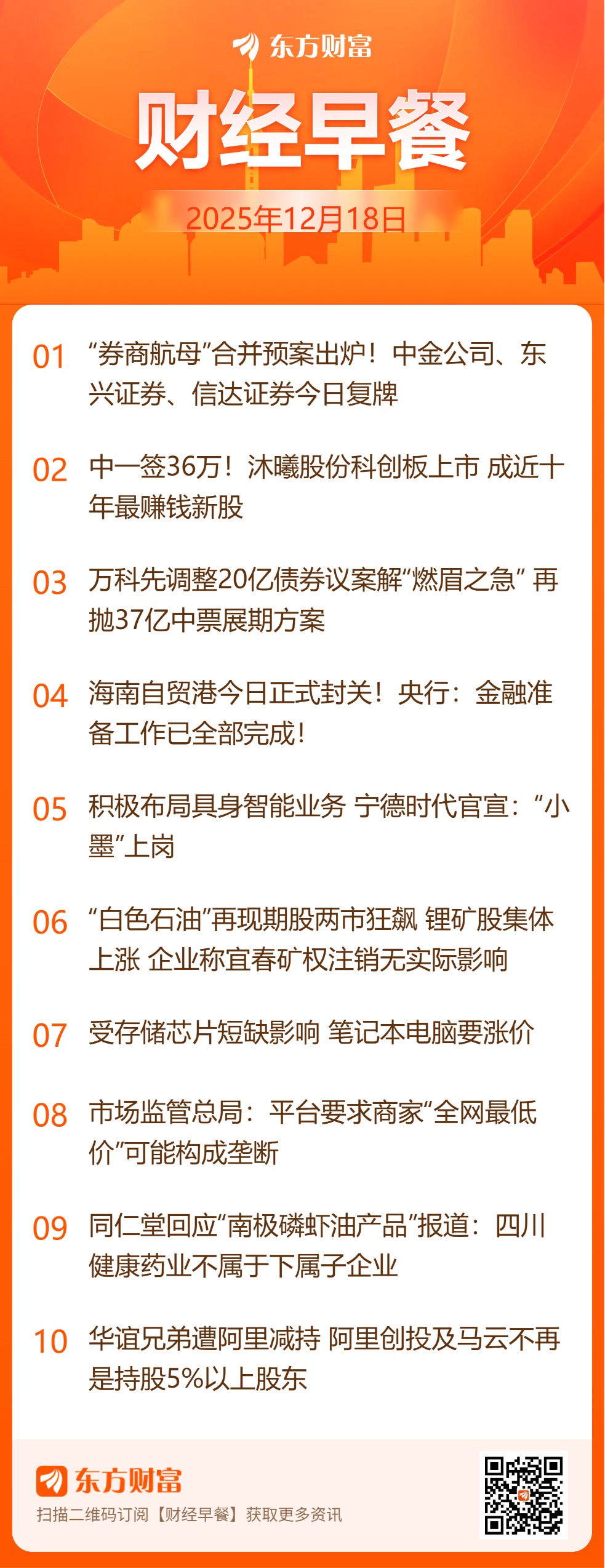 美克家居:公司正在筹划通过发行股份及支付现金的方式收购深圳万德溙光电科技有限公司控制权,并募集配套资金。公司股票自2025年12月18日起开始停牌,预计停牌时间不超过10个交易日。