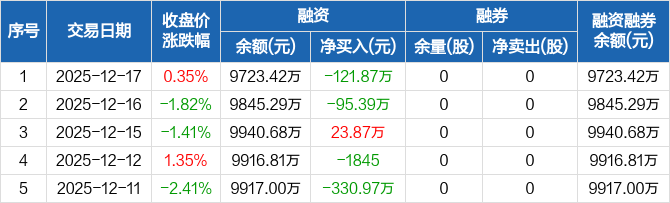 银河微电:融资净偿还121.87万元,融资余额9723.42万元(12-17)