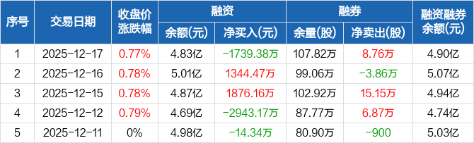 彩虹股份:融资净偿还1739.38万元,融资余额4.83亿元(12-17)
