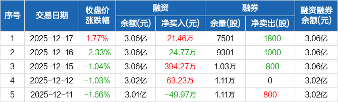 振华新材:融资净买入21.46万元,融资余额3.06亿元(12-17)