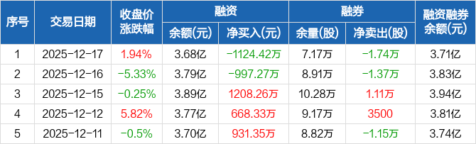 应流股份:融资净偿还1124.42万元,融资余额3.68亿元(12-17)