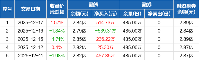 机器人ETF:融资净买入514.73万元,融资余额2.84亿元(12-17)