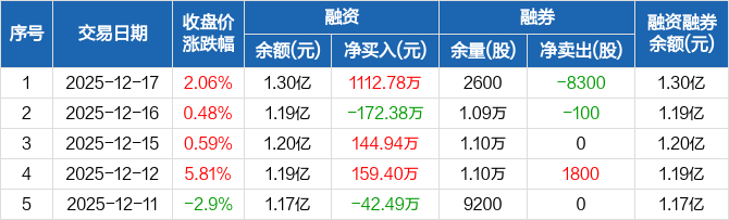 华宝股份:融资净买入1112.78万元,融资余额1.3亿元(12-17)