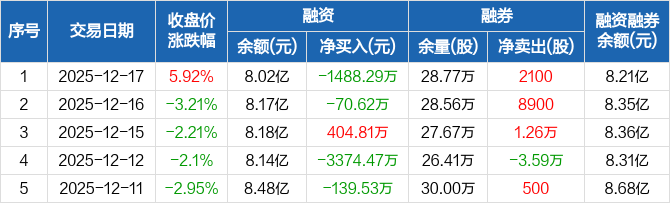 湖南裕能:融资净偿还1488.29万元,融资余额8.02亿元(12-17)