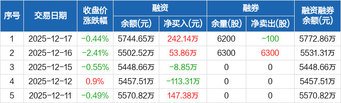 毓恬冠佳:融资净买入242.14万元,融资余额5744.65万元(12-17)