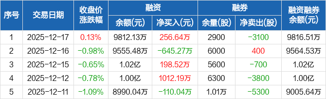 龙源电力:融资净买入256.64万元,融资余额9812.13万元(12-17)