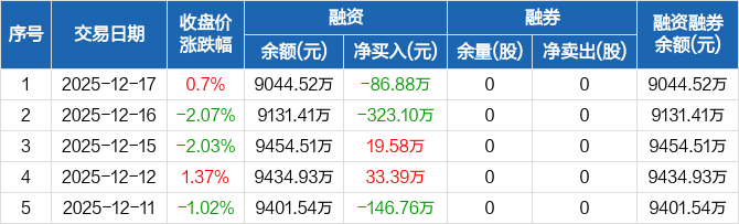 金通灵:融资余额9044.52万元,创近一年新低(12-17)