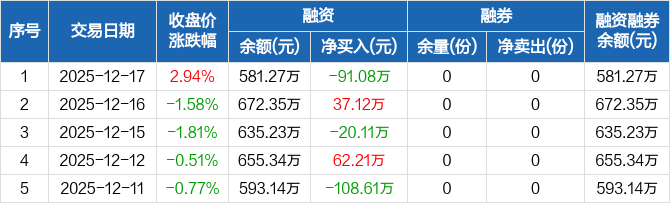 新能源车ETF:融资净偿还91.08万元,融资余额581.27万元(12-17)