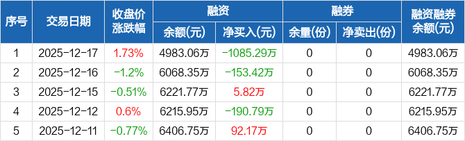 A500ETF:融资净偿还1085.29万元,融资余额4983.06万元(12-17)