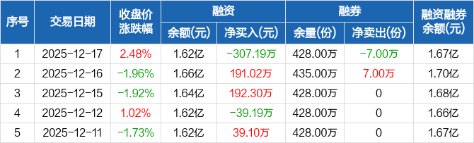 半导体ETF:融资净偿还307.19万元,融资余额1.62亿元(12-17)