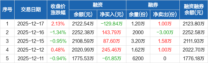 A50ETF:融资净偿还129.84万元,融资余额2122.54万元(12-17)