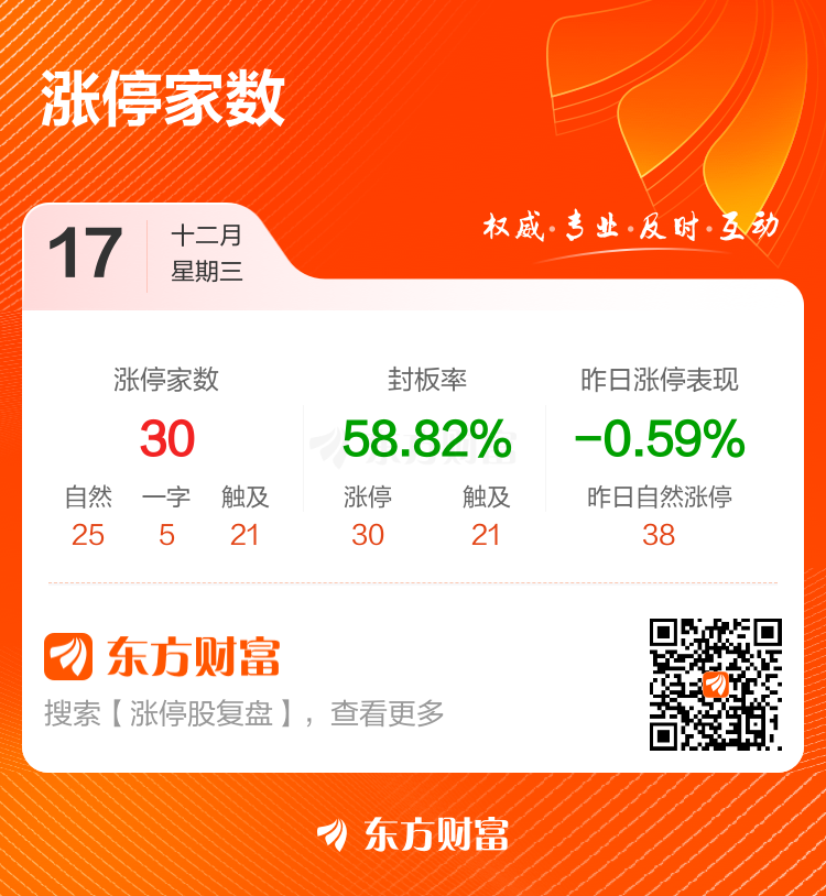 12月17日午间涨停复盘:30股涨停 南京商旅8天4板