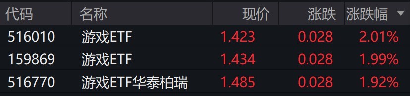 游戏概念股走强,巨人网络涨超3%,三七互娱、吉比特涨超2%。