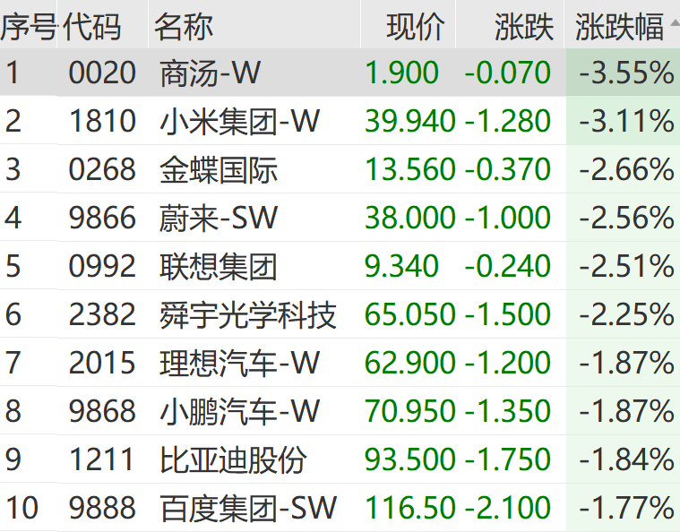 港股方面,截至午间收盘,三大指数飘绿。商汤、小米集团跌超3%,领跌恒生科技指数成份股。