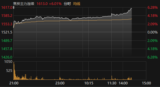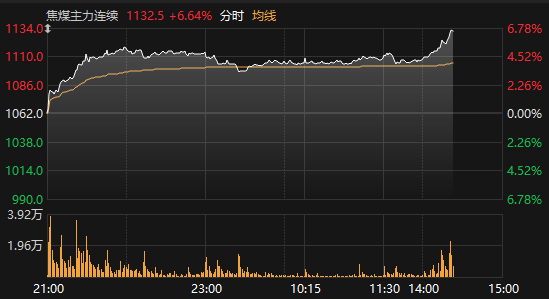 据Choice数据,12月18日国内商品期市午盘,焦煤、焦炭涨幅扩大至6%。截至14:22,焦煤连续主力合约报1132.5元/吨,涨6.64%,焦炭连续主力合约报1613.0元/吨,涨6.01%。