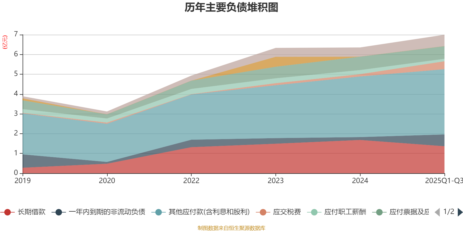 负债重大变化方面,截至2025年三季度末,公司长期借款较上年末减少19.02%,占公司总资产比重下降3.34个百分点;其他应付款(含利息和股利)较上年末增加7.62%,占公司总资产比重下降2.66个百分点;一年内到期的非流动负债较上年末增加323.13%,占公司总资产比重上升1.74个百分点;应交税费较上年末增加250.47%,占公司总资产比重上升1.06个百分点。