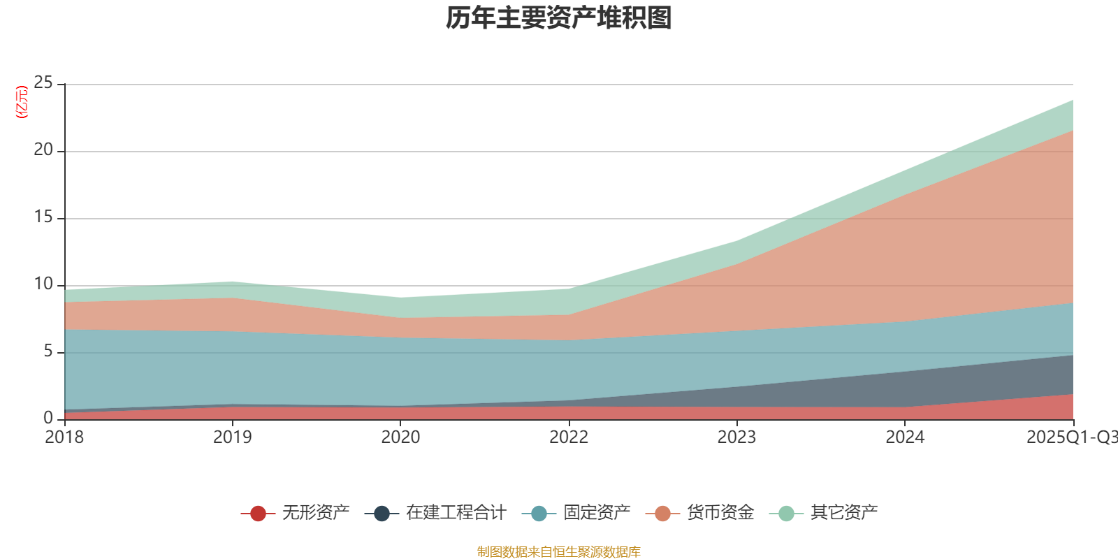资产重大变化方面,截至2025年三季度末,公司固定资产较上年末增加4.67%,占公司总资产比重下降3.7个百分点;货币资金较上年末增加36.15%,占公司总资产比重上升3.12个百分点;无形资产较上年末增加109.02%,占公司总资产比重上升3.02个百分点;在建工程合计较上年末增加9.28%,占公司总资产比重下降2.13个百分点。