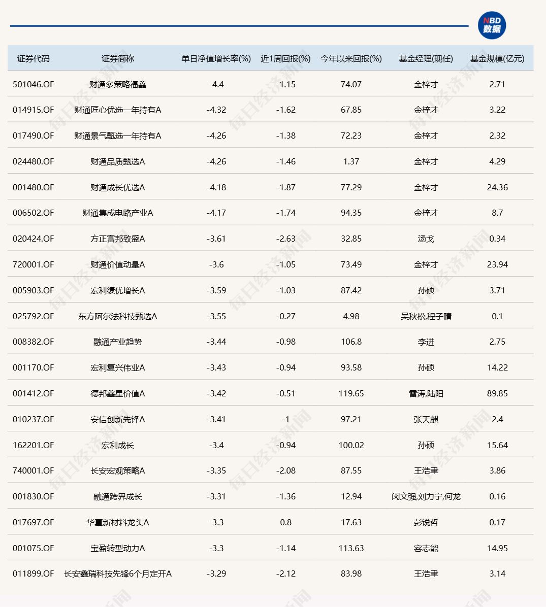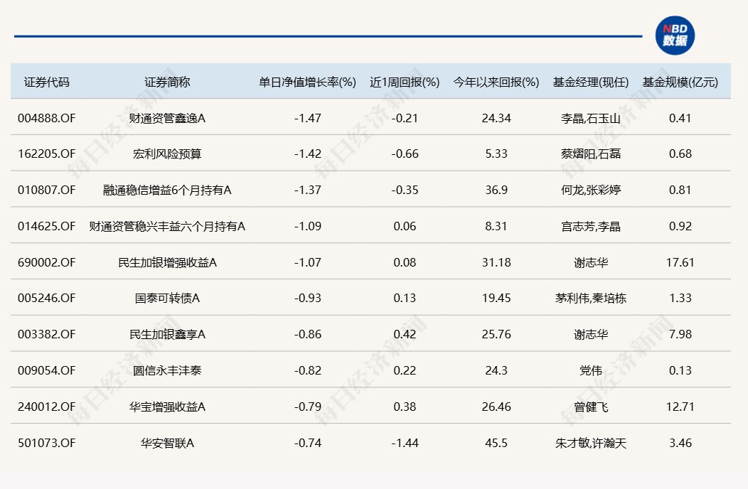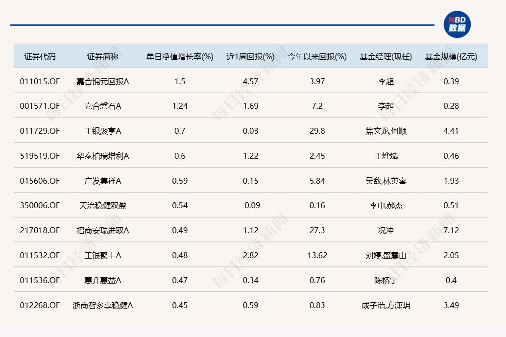3.单日债基涨跌幅榜
