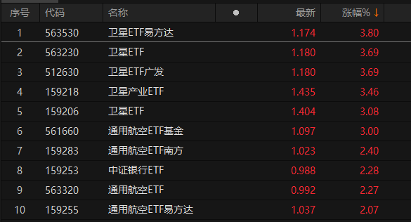 12月18日,卫星板块整体走强,多只相关ETF涨幅均超过3%。