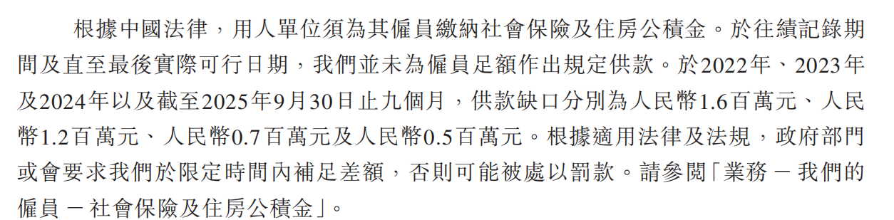 证监会还提问非全职人员(兼职、外包)社保缴纳情况、欠缴原因及劳动用工合规性。巴奴火锅招股书披露,2022年、2023年、2024年以及截至2025年9月30日止的前九个月,供款缺口分别为160万元、120万元、70万元及50万元。公司已采取以下补救措施,包括制定并全面实施有关社会保险及住房公积金管理的内部政策及程序,加强薪酬管理政策的完整性及明晰度,定期举办培训课程及进行内部沟通等。
