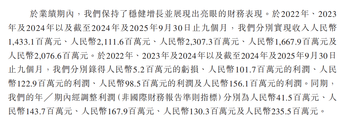 招股书显示,至12月7日,巴奴火锅的直营门店达162家,覆盖46个城市,较2021年末增长95.2%,“河南模式”成功复制至全国多省份。2022年-2025年前九个月,公司营业收入分别为14.33亿元、21.12亿元、23.07亿元与20.7亿元,净利润分别为-0.05亿元、1.02亿元、1.23亿元与1.56亿元,毛利率分别为66.2%、66.8%、67.9%与69.4%。