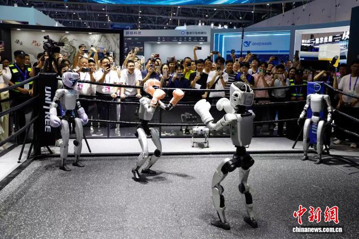 第四届全球数字贸易博览会上,当日,杭州宇树科技股份有限公司举办人形机器人“格斗”表演。李英洁摄