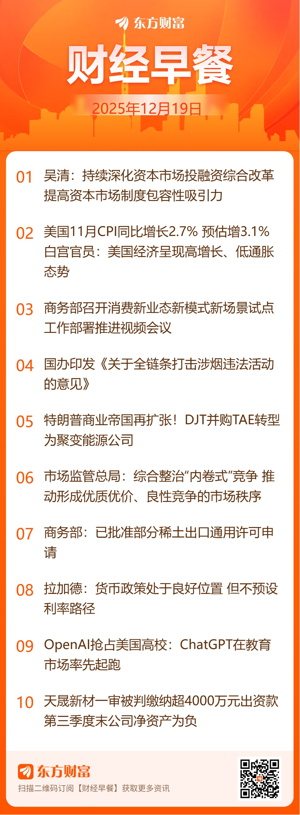 2025年12月18日,中国证监会主席、中国资本市场学会会长吴清出席中国资本市场学会学术委员会成立会议暨第一届第一次全体委员会议,并主持召开资本市场“十五五”规划专家座谈会。吴清表示,证监会将深入学习贯彻党的二十届四中全会和中央经济工作会议精神,扎实推进资本市场“十五五”规划编制和实施,紧扣防风险、强监管、促高质量发展的工作主线,持续深化资本市场投融资综合改革,稳步扩大制度型高水平对外开放,持续提高资本市场制度包容性吸引力,更好服务经济高质量发展和中国式现代化大局。