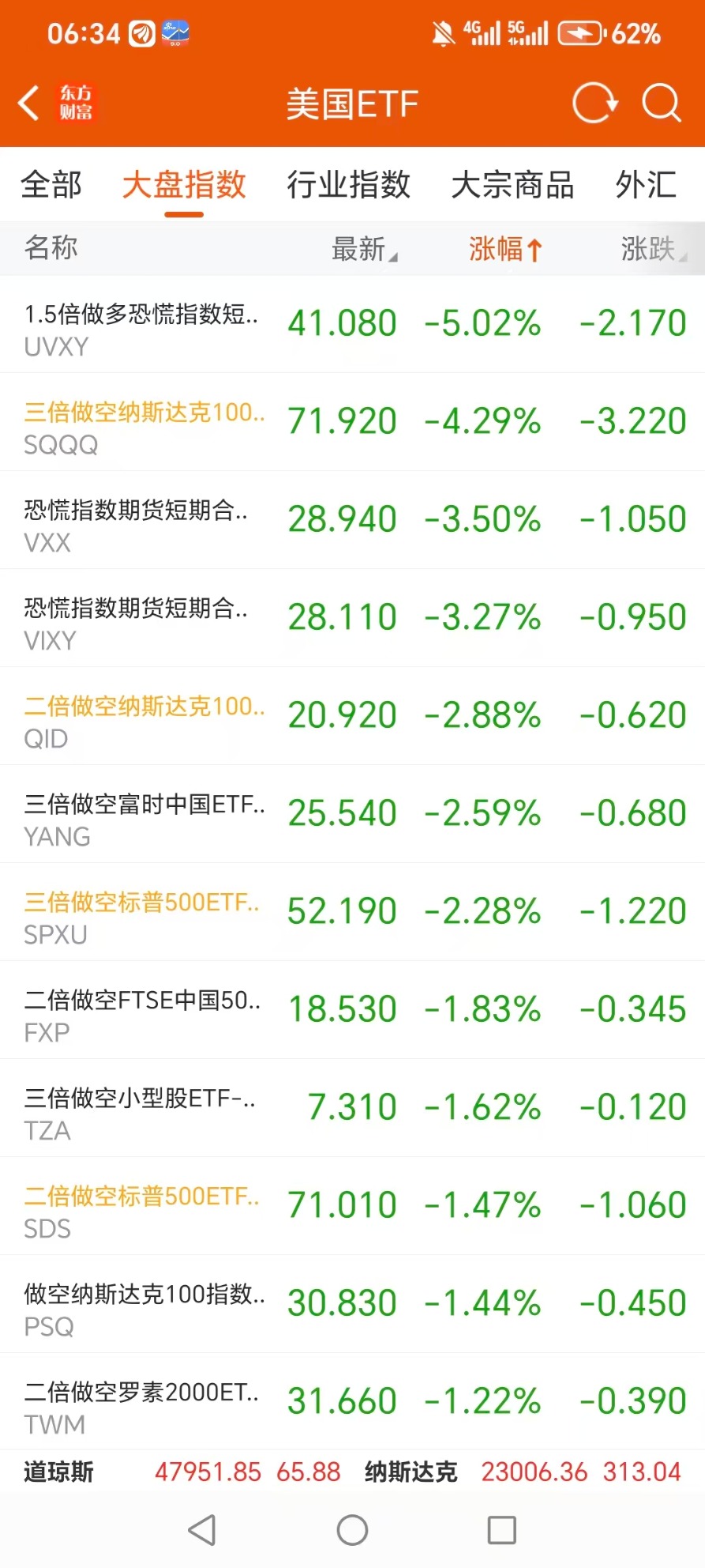 美股大型指数ETF跌幅榜Top5