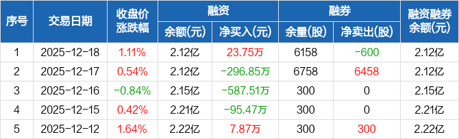灿勤科技:融资净买入23.75万元,融资余额2.12亿元(12-18)