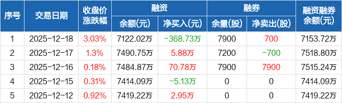 速达股份:融资净偿还368.73万元,融资余额7122.02万元(12-18)