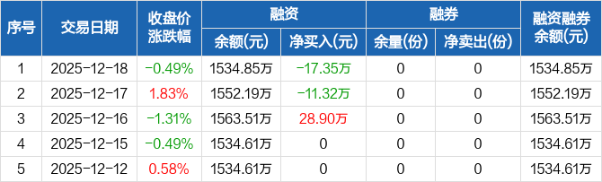 A500指数ETF:融资净偿还17.35万元,融资余额1534.85万元(12-18)