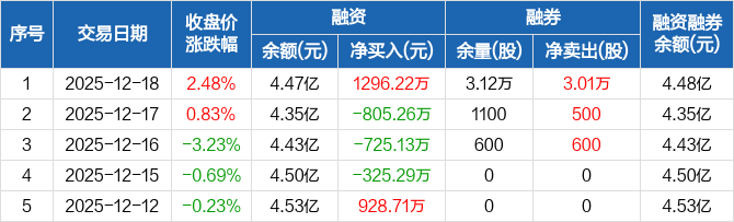 英威腾:融资净买入1296.22万元,融资余额4.47亿元(12-18)