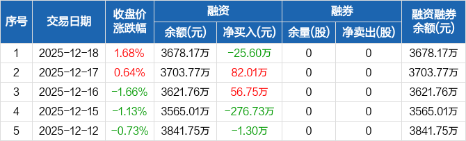 智迪科技:融资净偿还25.6万元,融资余额3678.17万元(12-18)