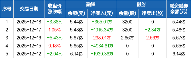 模塑科技:融资净偿还365.01万元,融资余额5.44亿元(12-18)